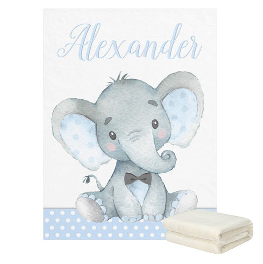Elephant Personalized Flannel Fleece Baby Blankets