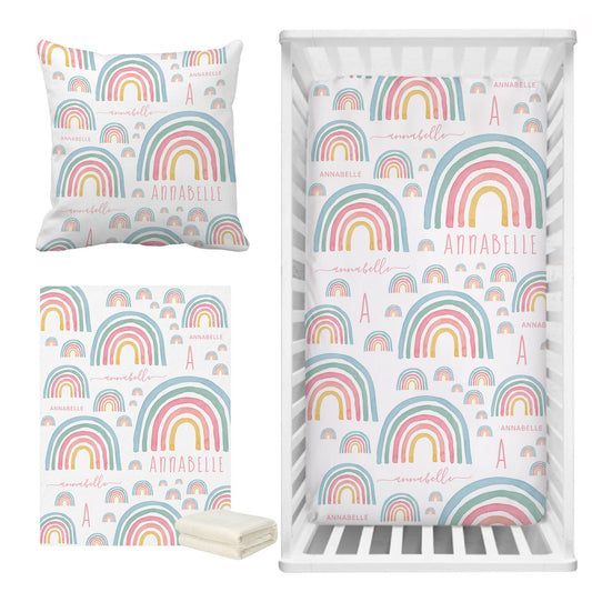 Personalized Baby Bedding Set | Bamboo Fitted Sheet, Pillow Cover & Fleece Blanket